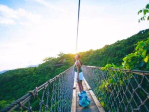 Featured in the film ‘If You Are the One’ and the TV series ‘My True Friend’, this suspension bridge spans