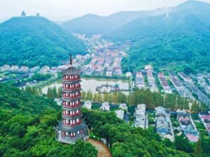Dongyuan Tower, a prominent landmark in the eastern part of Fenghua, stands tall on Shang Mountain within Huangxian Forest Park.