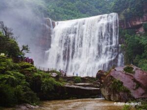 The renowned feature within the scenic area is the Chishui Dapu Waterfall, also known as the Shi Zhang Dong Waterfall,