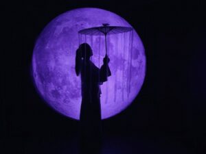 Inside a room adorned with mirrors and hung with dozens of colored light bulbs, the flickering lights create a fairyland-like