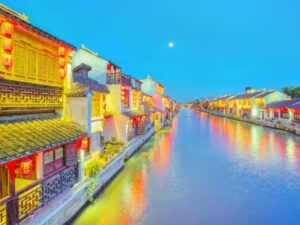 The Qingming Bridge Ancient Canal Scenic Area is located in the heart of Wuxi City, where ancient water town buildings