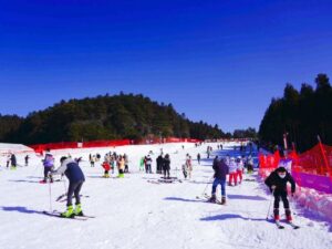 Mingyue Mountain Ski Resort is located at the upper station of the Mingyue Mountain scenic cable car. Board the sightseeing
