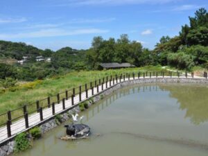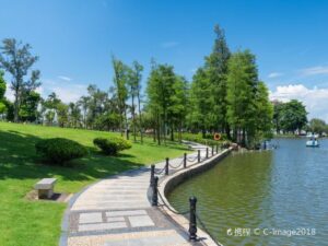 This leisure area has a vast area and many facilities, including bicycle lanes, walking paths, lawns, gardens, playgrounds, and an