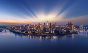 United International Building in Chongqing is situated on Xinhua Road, near the Jiefangbei, a significant part of the urban landmark