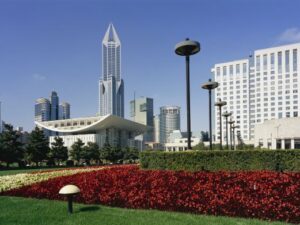 The Shanghai Grand Theatre is located in the bustling area of People’s Square. It is bordered by People’s Avenue to