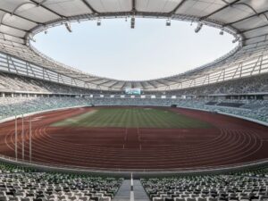 Suzhou Sports Center is located at No. 183 Sanxiang Road, Suzhou, at the southern foot of the Shishan Bridge in