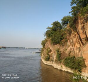 Yanziji Park is located on the south bank of the Yangtze River. The pointed mountain top protrudes into the river