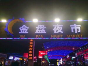 Jinpan Night Market is one of the well-established night markets in Haikou, featuring clear functional zones including clothing, food stalls,