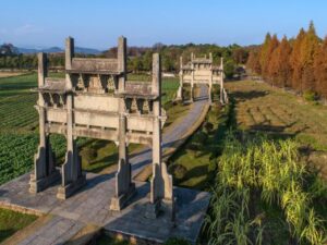Located 6 kilometers west of She County, the Tangyue Memorial Arches consist of seven impressive arches, each spanning the stone