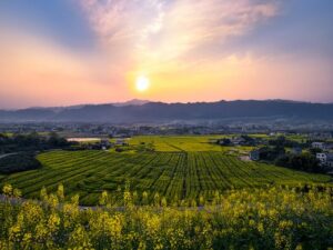 Dianjiang Grand View Garden features an observation deck that offers a panoramic view of vast rapeseed flower fields, making it