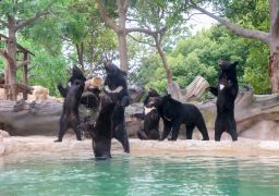 In the exhibition area of Feixiong Villa, a group of lively black bears reside. To…